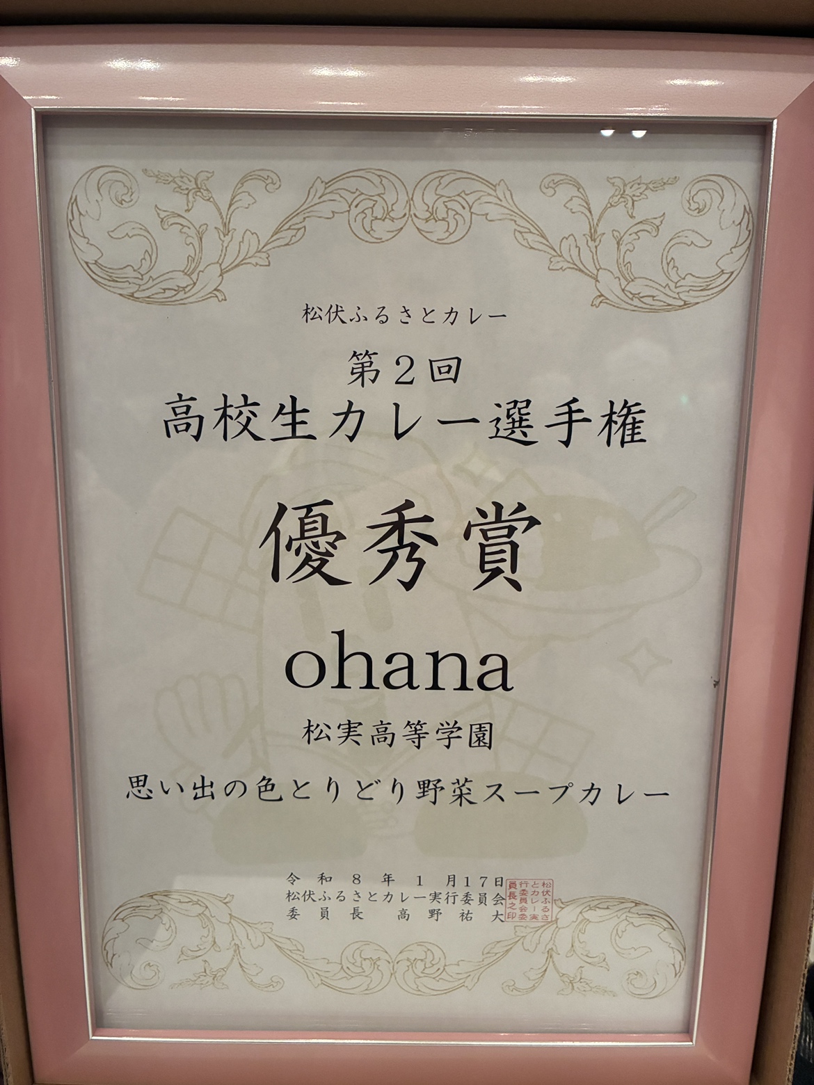 惜しくも2位でしたが、最後の2チームに残り、呼ばれる時はドキドキしました。
